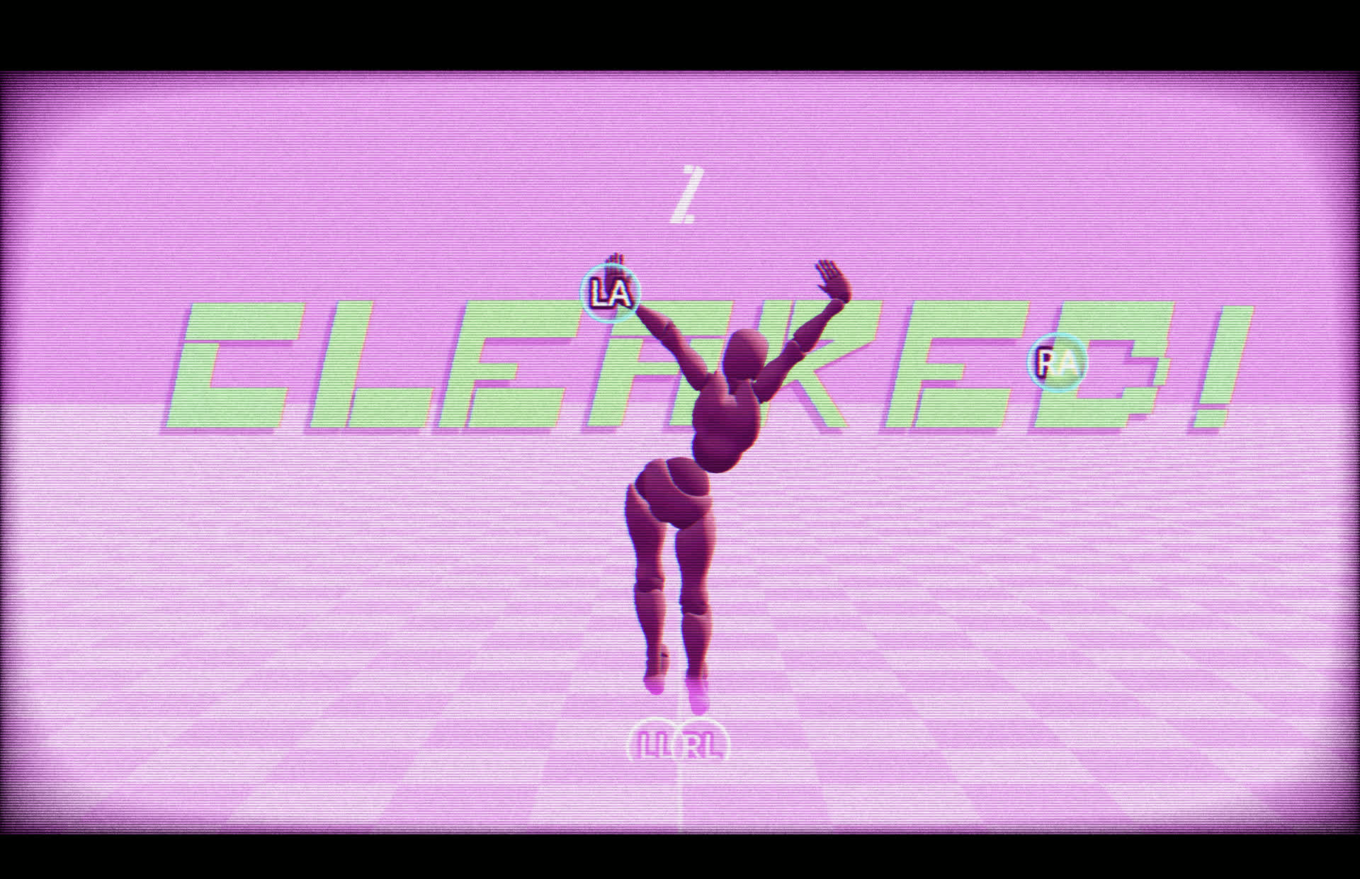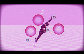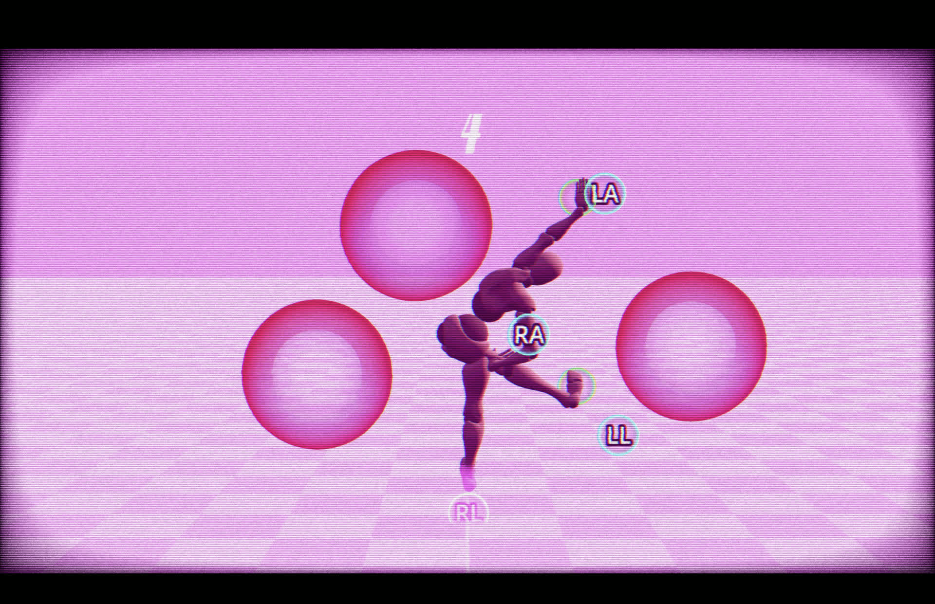 2. Adjust your character's pose using the four controls to hit the green markers to score and avoid the red ones